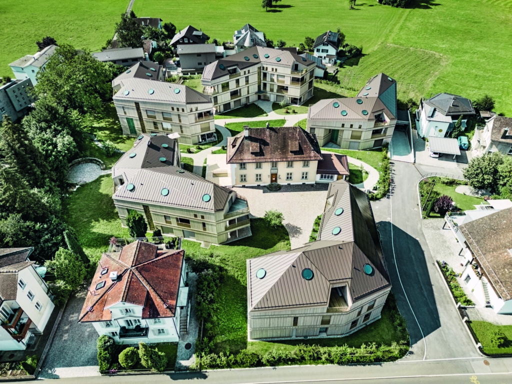 Архитектор и градостроитель Ихаб Морган из цюрихской компании Townset расположил новые здания таким образом, чтобы из них открывался вид на окружающие горы, парк и историческую виллу. Обширные пространства соединяют здания с непринужденным, напоминающим виллу окружением, создавая гармоничную атмосферу. На первый взгляд, здания очень похожи, но дизайн следует продуманной структуре: форма каждого здания адаптируется к расположению на склоне холма, а количество этажей разнесено, что позволяет гибко интегрировать архитектуру в окружающую среду.