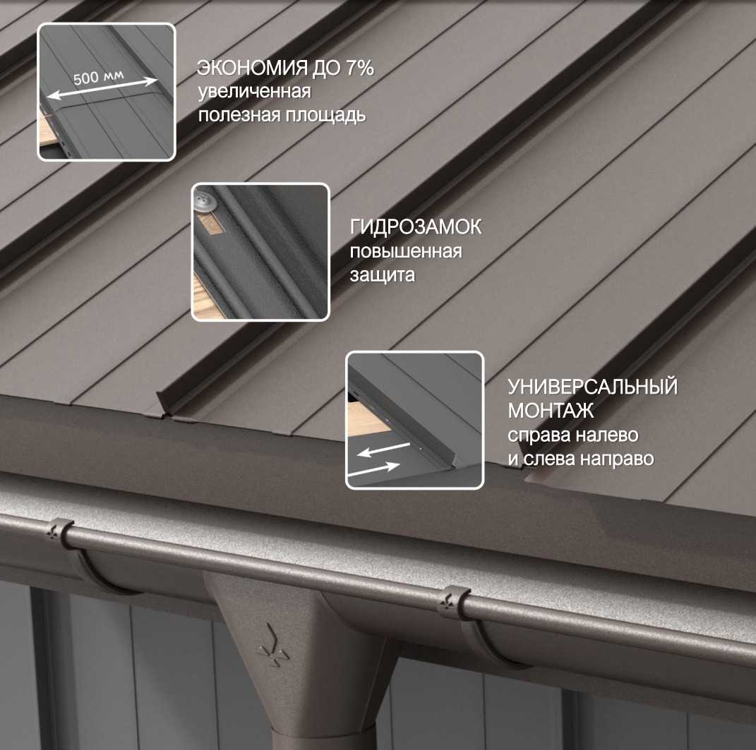 Самозащелкивающаяся система обеспечивает высокую степень водонепроницаемости, поскольку швы плотно прилегают друг к другу и исключают возможность протекания.
