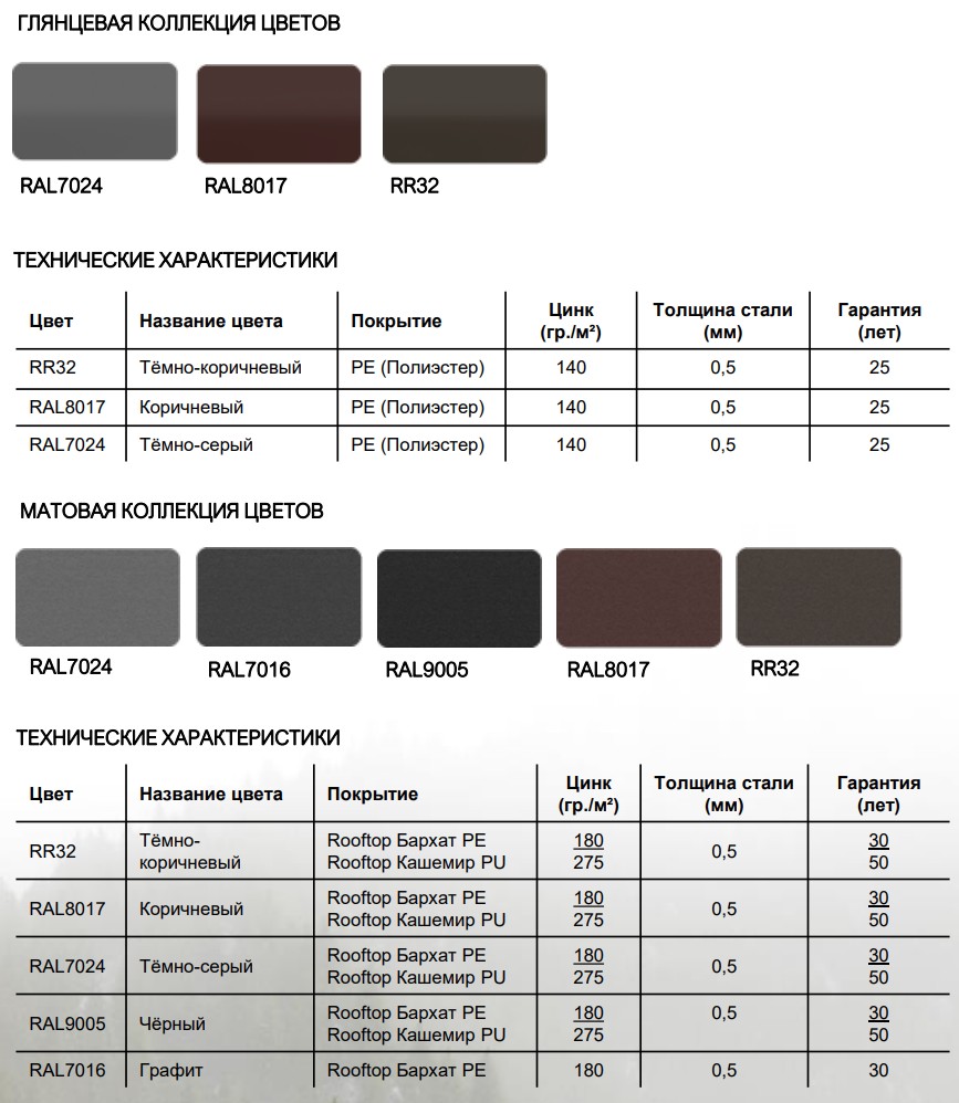 ВАРИАНТЫ ПОКРЫТИЯ И ЦВЕТОВ