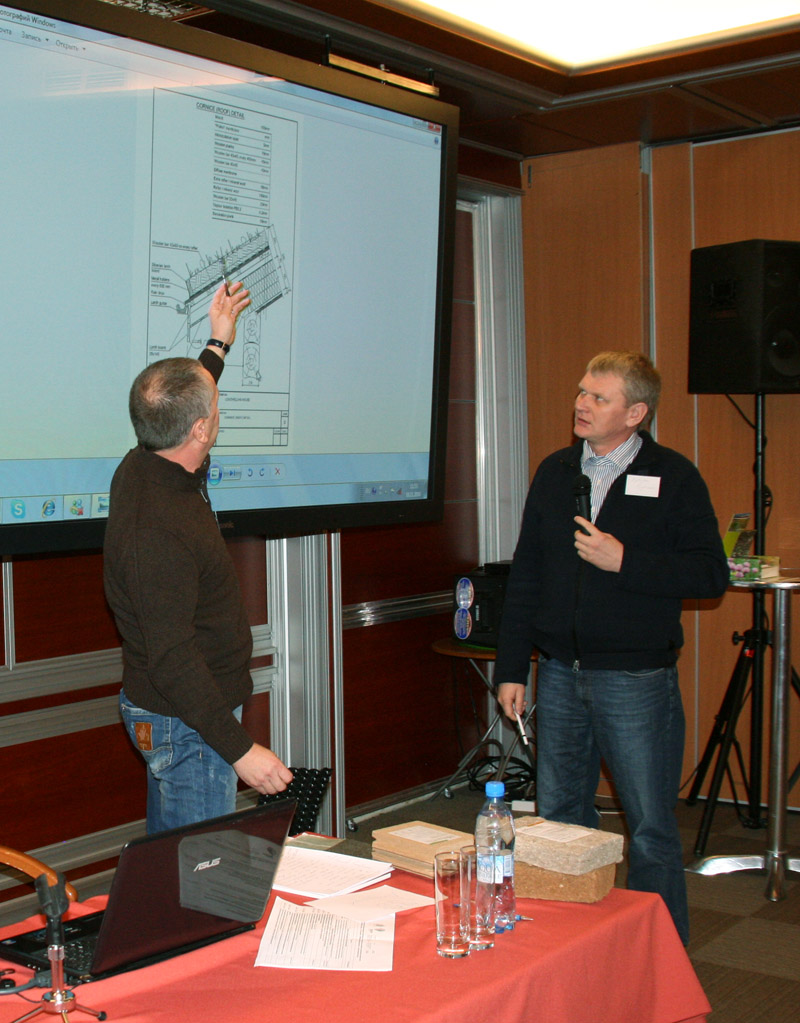 Денис Демченко, специалист компании «Лутон», официального представителя компании Bauder, подробно рассказал о системах озеленения Bauder, а Анатолий Догадин, инженер-консультант компании «ТеМа» — о комплексных решениях, выпускаемых под маркой «ТеМа». Эти выступления заинтересовали слушателей, которые активно задавали вопросы и обсуждали те или иные элементы предлагаемых узлов кровельных «пирогов».