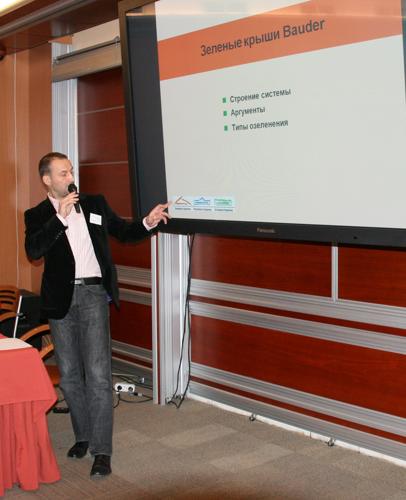 Выступление Ивана Тирского, представителя интернациональной компании «Logtechgroup»Европейскими производителями материалов для систем озеленения кровель накоплен богатый практический опыт, заложенный в основу их разработок. Все они готовы к активному сотрудничеству со своими российскими коллегами.
