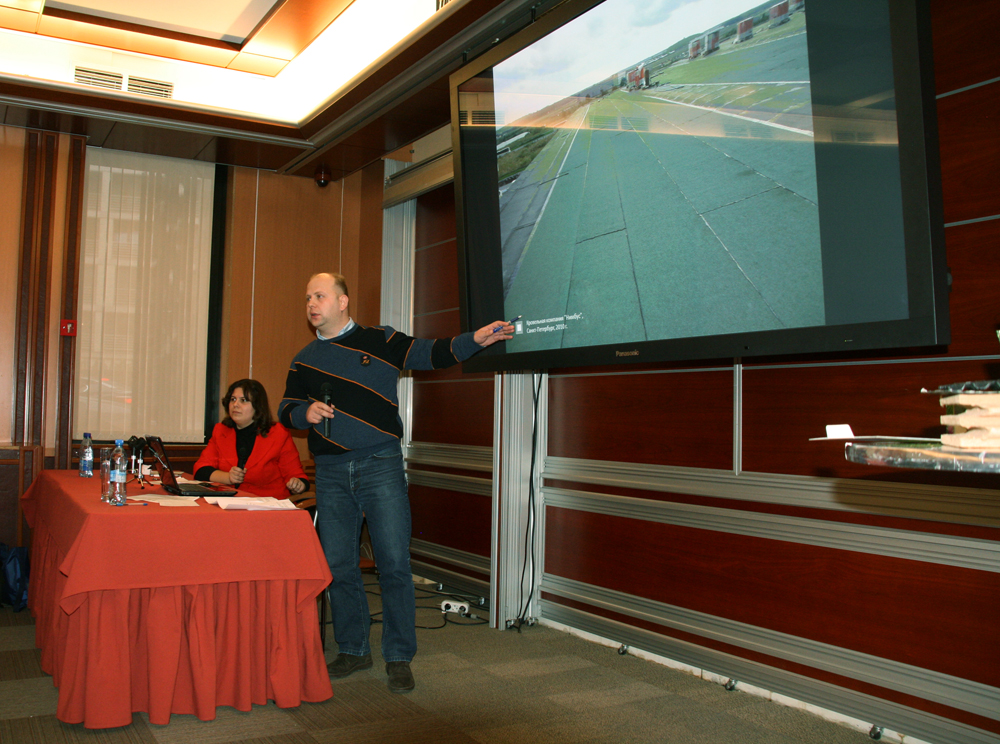 Впервые в России на нашем семинаре компания Huntsman представила свою инновационную разработку материал VydroНе смотря на все страхи и опасения заказчиков по отношению к зеленым кровлям, за последнее десятилетие в Москве и Санкт-Петербурге, а также в их пригородах, возведено уже немало объектов с зелеными крышами. В числе последних объектов — гостинично-деловой комплекс «Аэропорт Сити» близ аэропорта «Пулково», о котором рассказал в своем выступлении, генеральный директор компании «Нимбус» Александр Станкевич.