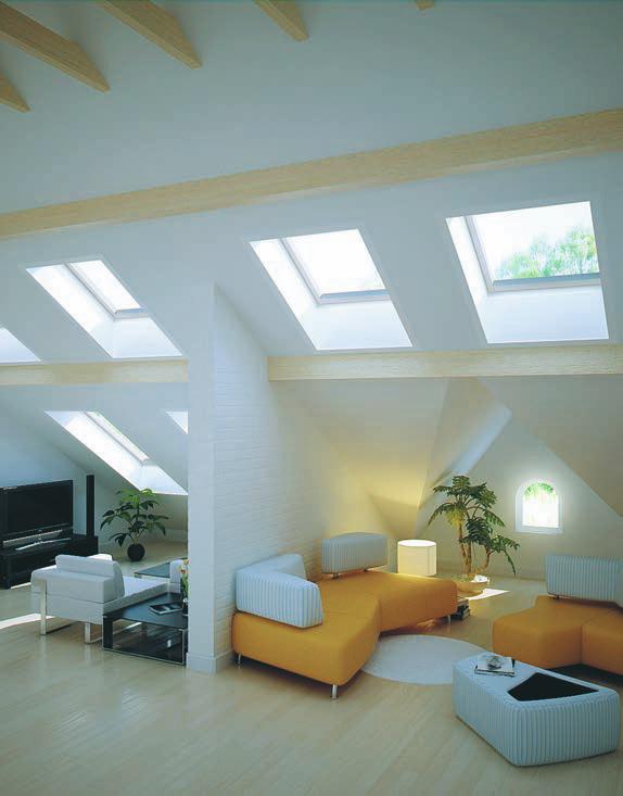 Сочетание различных вариантов конструктивных решений крыши, мансардного и вертикального остекления подчеркивает уникальность мансардного этажа, а также позволяет создать интересные интерьерные решения внутри помещения, наполненные солнечным светом.