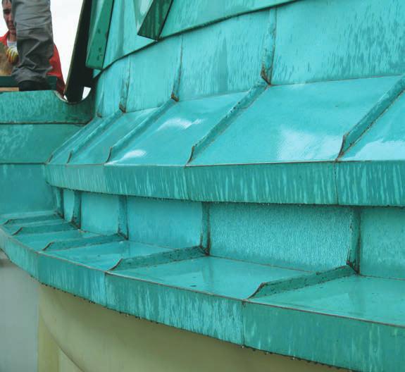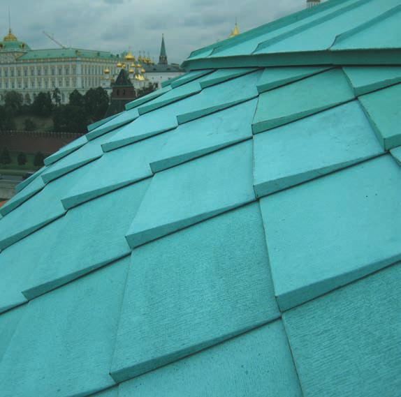 трапециевидные картины. А верхний ряд ромбов не имеет пологих лежачих фальцев, как это было раньше. Таким образом, и с точки зрения эстетики, и с точки зрения надежности новый купол, конечно, сделан по последнему слову современной кровельной науки и техники. Причем сделан по отечественной технологии, с использованием российского станка и настоящими российскими профессионалами, добросовестно освоившими весь современный европейский опыт коллег.