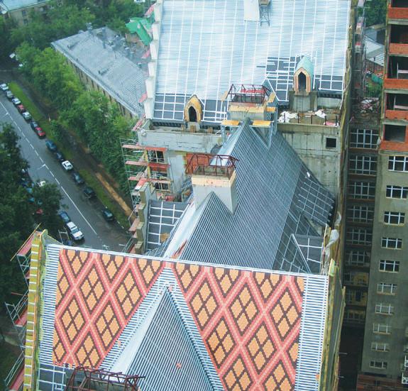 Монтаж черепицы на зданиях жилого комплекса «Эльсинор», Москва