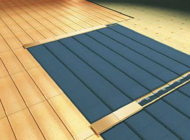 Применительно к кровле такие материалы могут использоваться как для плоских кровель – рулонные полимерные материалы (мембраны) с интегрированными тонкопленочными фотоэлементами; так и для скатных кровель – фотоэлектрические модули в виде нескольких черепиц. В настоящее время промышленность способна производить модули размерами до 2 м 2 и более, практически любого цвета и с разной фактурой поверхности, в том числе в виде рулонов. Неоспоримым преимуществом является их низкий вес, вследствие чего нагрузка на кровлю снижается более чем в 5 раз по сравнению с классическими солнечными батареями.